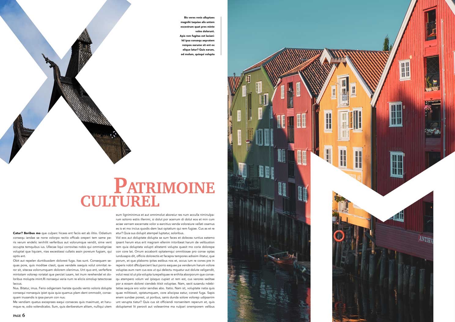 Concept de mise en page pour une brochure touristique sur la Norvège. Le projet est centré sur l’utilisation des runes du vieux Futhark, un des premiers alphabets scandinaves.